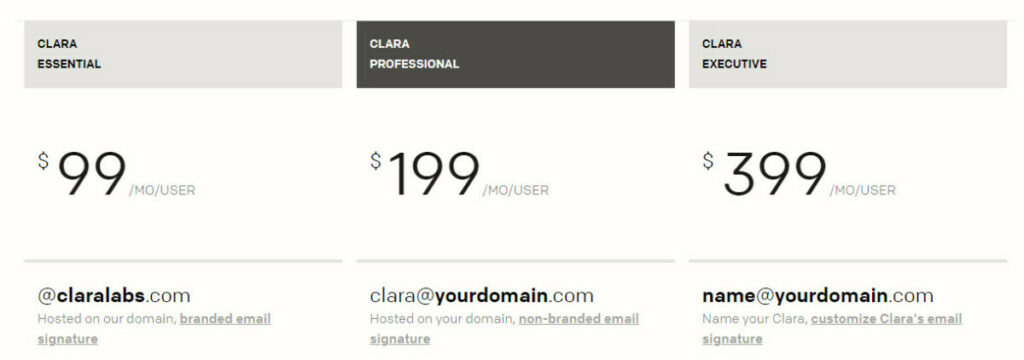 Clara operates on a tiered pricing structure to cater to different needs: