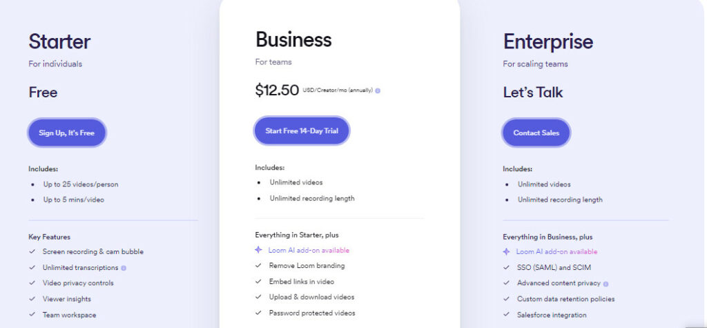 Loom’s Pricing Model: Just Video